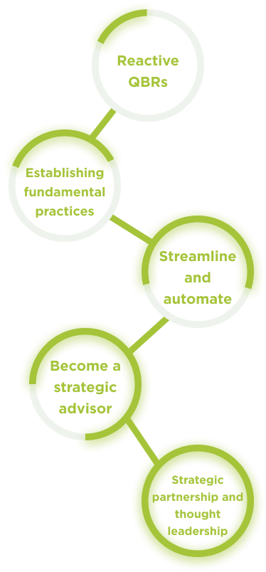 At this stage, QBR facilitators become strategic advisors. Insights gained during QBRs are transformed into strategic recommendations, and collaborative efforts with clients result in the development of action plans for improvement and optimization. The process is so well-versed that it becomes scalable for taking on additional clients.