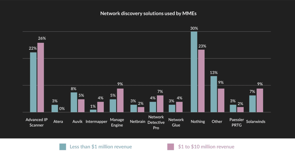 How can you secure your IT network if you don’t even know what’s connected to it? Robust tools for network discovery are available; however, a significant number of survey respondents don’t leverage a dedicated tool for network discovery. If you want to scale seamlessly without any issues, you need a dedicated network discovery solution that helps you understand how various devices are connected and how they interact with each other. It’s the difference between automated network topology maps that are updated daily and no real visibility at all.