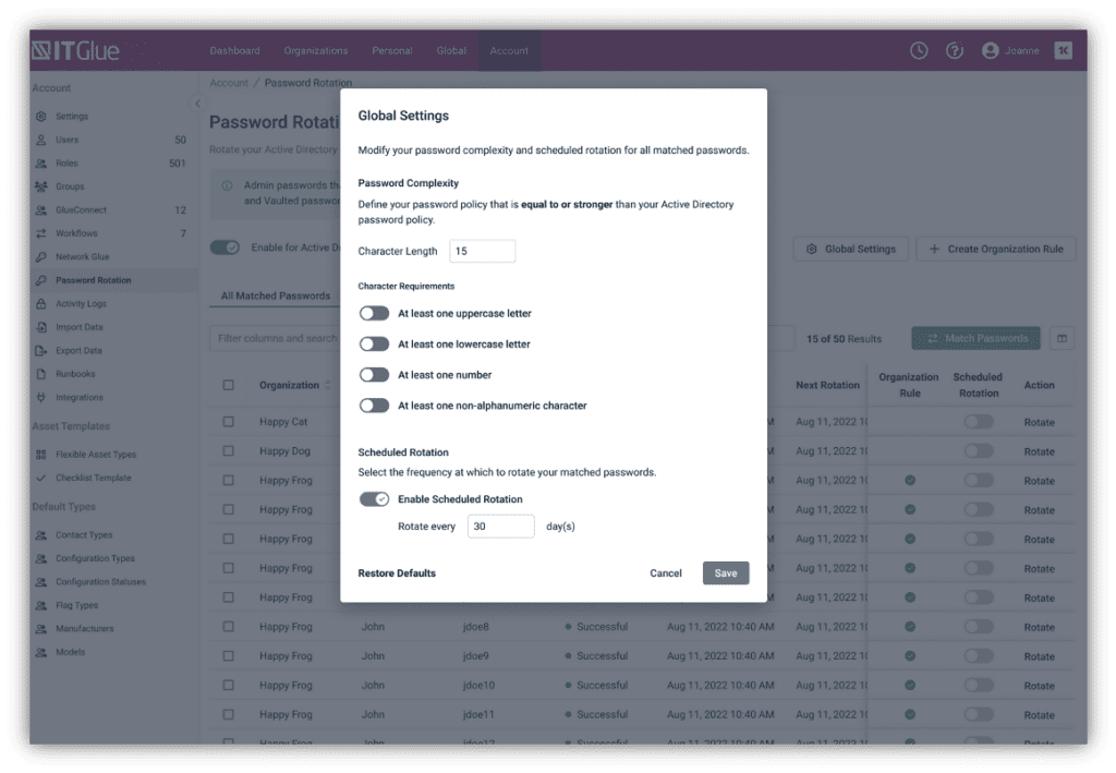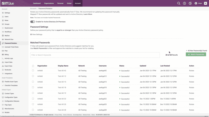 • COMING SOON! Entra ID Password Rotation: Network Glue will let you set a schedule and rotate Entra ID passwords directly from IT Glue. ​Complimenting on-premises password rotation in IT Glue, you will no longer need to rely on third-party password rotation tools.